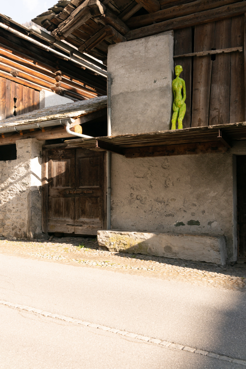 Minnig zeigt in einem der typischen Ställe im Dorfkern ein Werk, das sich an menschliche und tierische Besucher:innen richtet. Die ortsspezifische, aus einfachen Materialien gefertigte Installation ist darauf angelegt, von Tieren belebt und benutzt zu werden. Minnig thematisiert die (spannungsreiche) Beziehung zwischen Mensch und Umwelt, was für Minnigs Schaffen ebenso charakteristisch ist wie der direkte Bezug auf die Umgebung des Ausstellungsorts und der Einsatz von Materialien, die nicht in erster Linie mit Kunst in Verbindung gebracht werden.